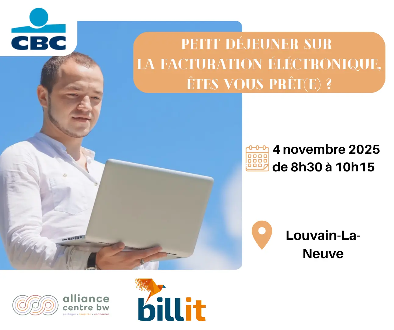 A partir de janvier 2026, la facturation électronique deviendra obligatoire pour toutes les entreprises belges. CBC et Billit vous accompagnent pour anticiper ces changements et mettre en place une solution simple, conforme et automatisée.