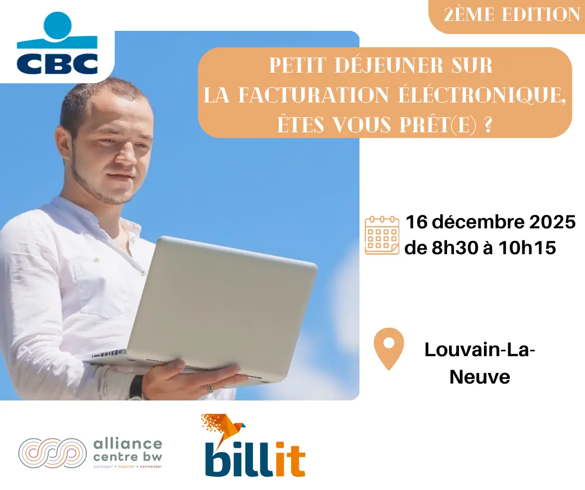 A partir de janvier 2026, la facturation électronique deviendra obligatoire pour toutes les entreprises belges. CBC et Billit vous accompagnent pour anticiper ces changements et mettre en place une solution simple, conforme et automatisée.